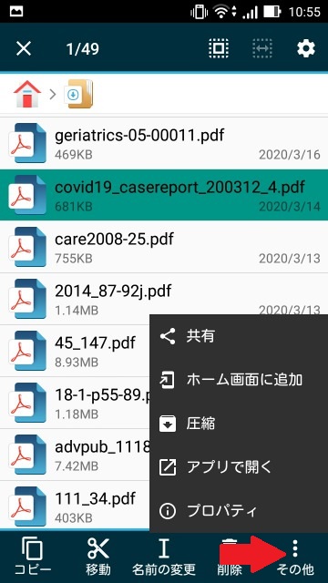 3.対象のファイルを選択し、右下の【その他】から【ホーム画面に追加】をタップ