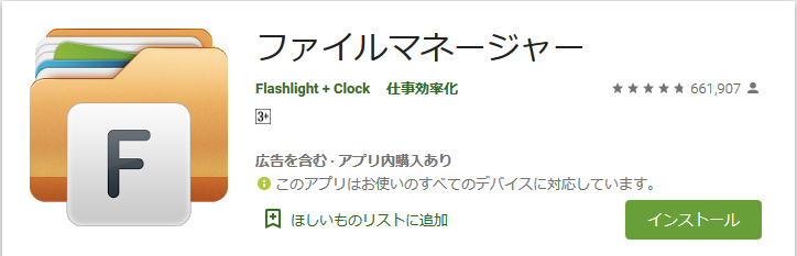 Androidのスマホにホーム画面にPDFファイルなどを保存する手段がない以上アプリのダウンロードは避けては通れませんが、こちらのファイルマネージャーは名前が知れているので安心して使えます。