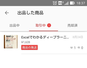 郵便局のどこかにQRコードを読み取る機械(ゆうプリタッチ)が置いてありますので、ラクマのアプリを開いて「出品した商品」→「取引中」→送りたい商品を選択します。
