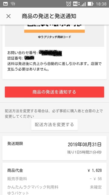 発送期限までに通知をしないと運営から催促がきてしまいます。