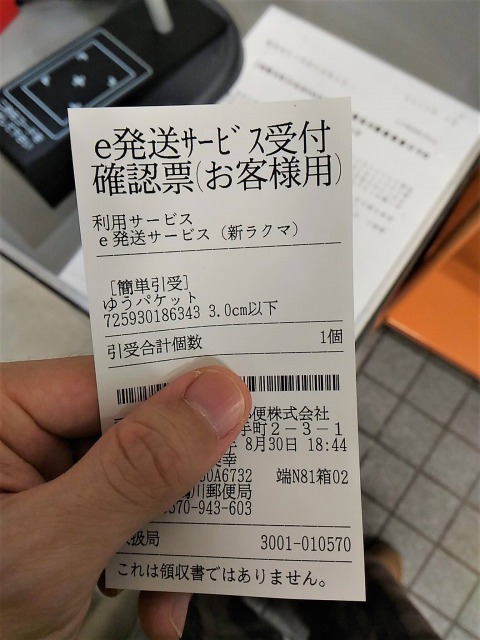 領収書ではありませんが、送った証拠になるので取引が終わるまで残しておきます。