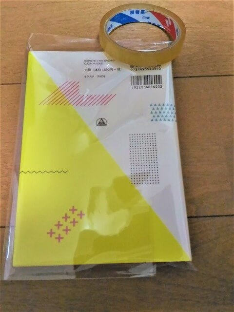 OPP袋に本を横向きにして入れます。大きい本ならそのまま縦に入れてください。