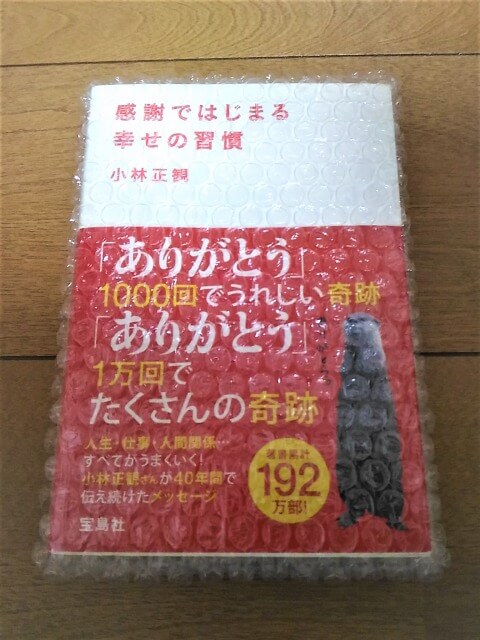 プチプチは粒のある方を外側にしたいので、つるつるしている面に本を置きます。
