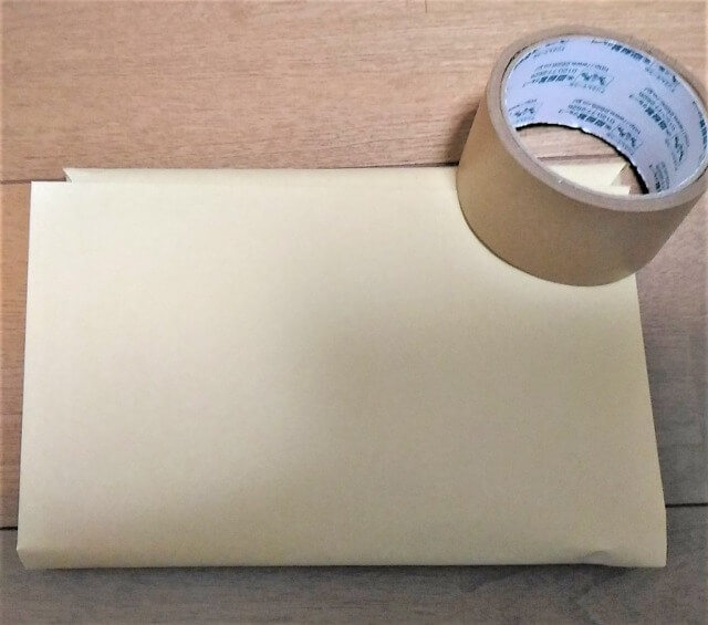 A4サイズだと大きいので本を端っこに寄せて余った部分を裏側に折り込んでガムテープでとめます。