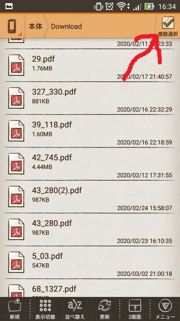 2.複数選択をタップ(対象ファイルが1つだけでもOK)